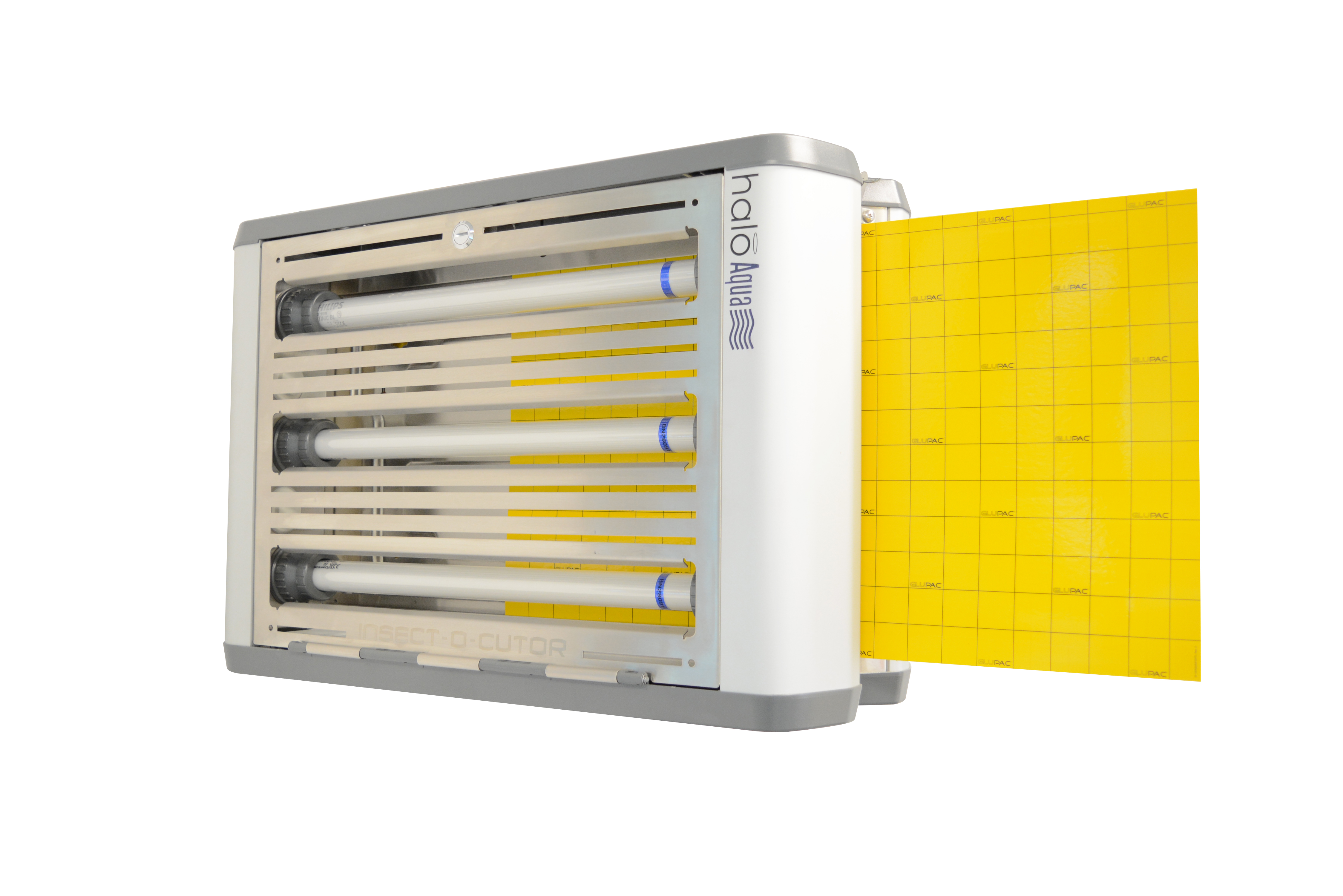 De Insect-O-Cutor Halo 2x45 Aqua UV-insectenlamp maakt deel uit van de uitgebreide Halo®-serie en is ontworpen voor gebruik in veeleisende omgevingen. Deze UV-vliegenvanger is de ideale oplossing voor vochtige ruimtes of gebieden die natreiniging vereisen. Het apparaat is IP45-geclassificeerd (spatwaterdicht) en combineert hoge effectiviteit met een modern en discreet ontwerp. De insectenval is uitgerust met de gepatenteerde Glupac®-lijmplaat met UV-stabilisator en heeft een bereik van 240 m². De Insect-O-Cutor Halo 2x45 Aqua is een dubbelzijdig model (2 x 45 watt) met een roestvrijstalen constructie voor extra stevigheid. De FEP-gecoate, breukvaste UV-lampen zorgen voor optimale veiligheid en prestaties, terwijl het onderhoud dankzij het kantelbare voorpaneel zeer eenvoudig is. De Halo 2x45 kan eenvoudig aan het plafond worden gemonteerd. Ook verkrijgbaar als Insect-O-Cutor Halo 45 Aqua UV-insectenlamp (enkelzijdig – 120 m²). Andere modellen uit de Halo®-serie zijn beschikbaar met 15, 30 (enkel- of dubbelzijdig) of 45 watt (zonder IP45-classificatie).