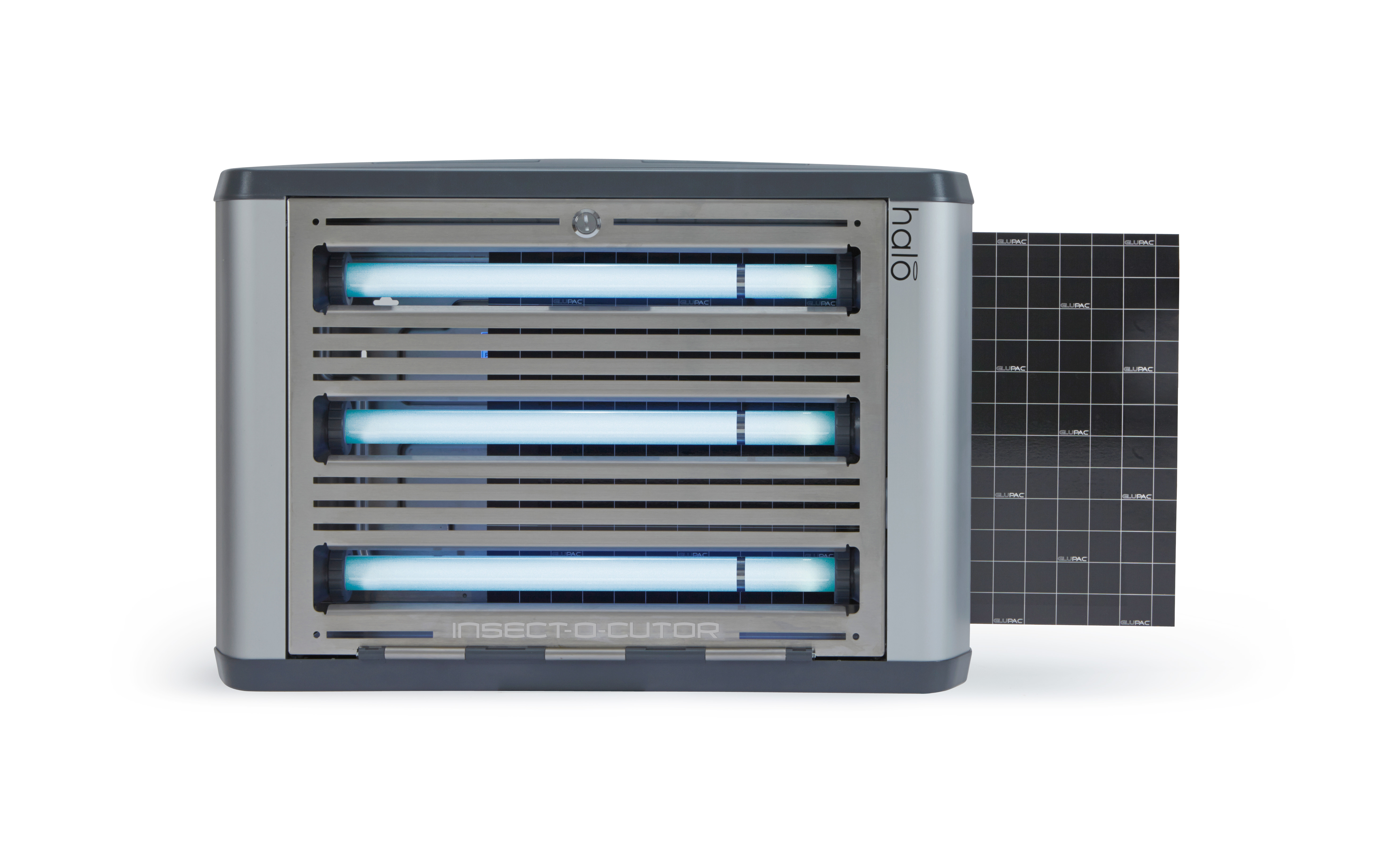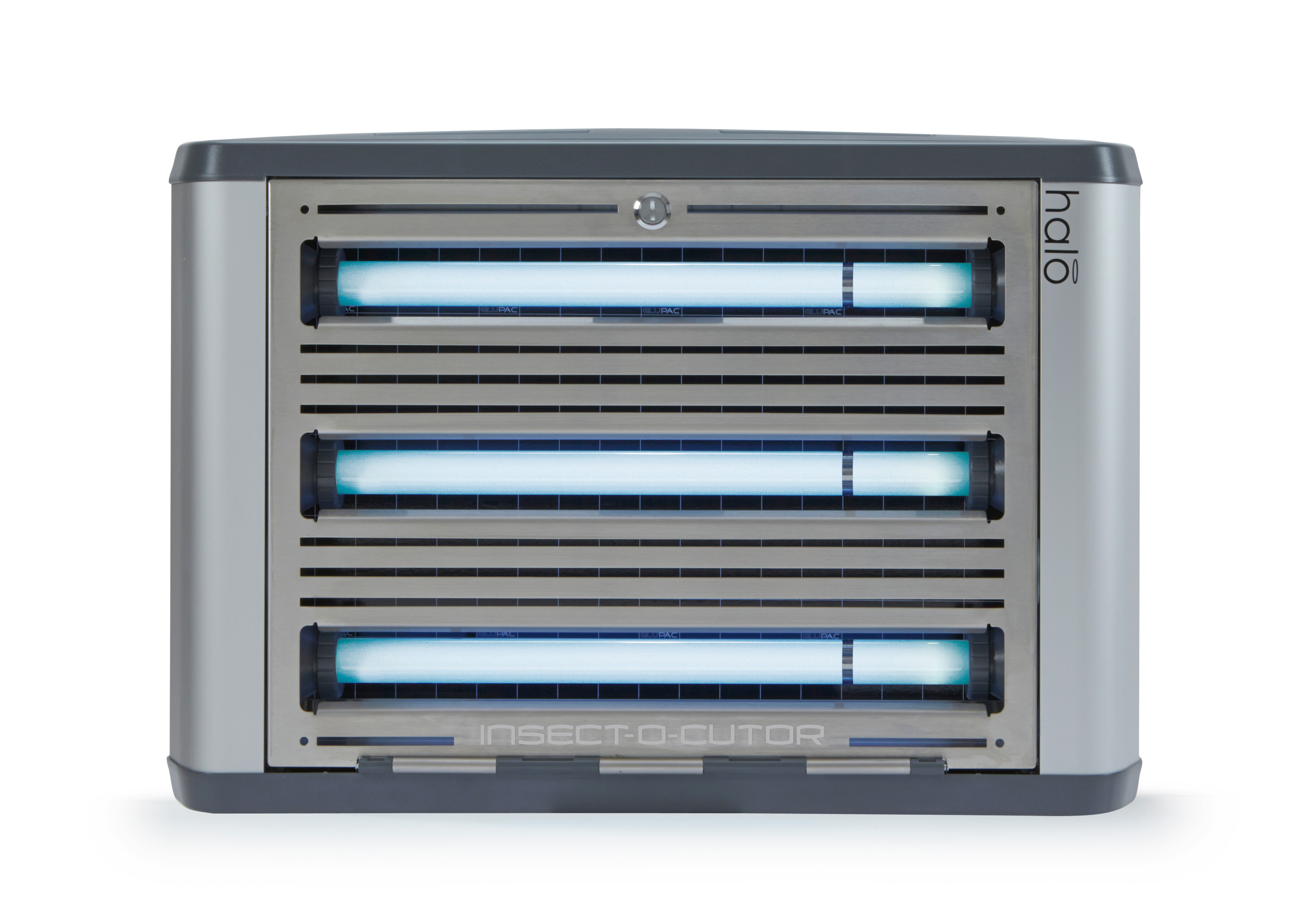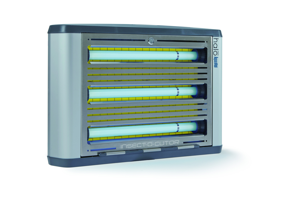 Insect-O-Cutor Halo 45 Aqua UV-insectenval De Insect-O-Cutor Halo 45 Aqua UV-insectenval maakt deel uit van de uitgebreide Halo®-serie en is ontworpen voor veeleisende omgevingen. Dit model is de ideale oplossing voor vochtige ruimtes of locaties die nat gereinigd moeten worden. De insectenvanger is IP45-geclassificeerd (spatwaterdicht) en combineert hoge effectiviteit met een modern en discreet design. Het apparaat met lijmplaat is uitgerust met de gepatenteerde Glupac®-lijmplaat met UV-stabilisator en heeft een bereik van 120 m². Het dubbelzijdige model is voorzien van FEP-gecoate, breukbestendige UV-lampen en de robuuste behuizing is gemaakt van roestvrij staal 316. Het onderhoud is eenvoudig dankzij de kantelbare voorzijde, en de montageopties zijn veelzijdig: zowel horizontale als verticale wandmontage zijn mogelijk. Ook verkrijgbaar als Insect-O-Cutor Halo 2x45 Aqua UV-insectenval (dubbelzijdig – 240 m²). Andere modellen uit de Halo®-serie zijn verkrijgbaar in 15, 30 (enkel- of dubbelzijdig) of 45 Watt (zonder IP45-classificatie).