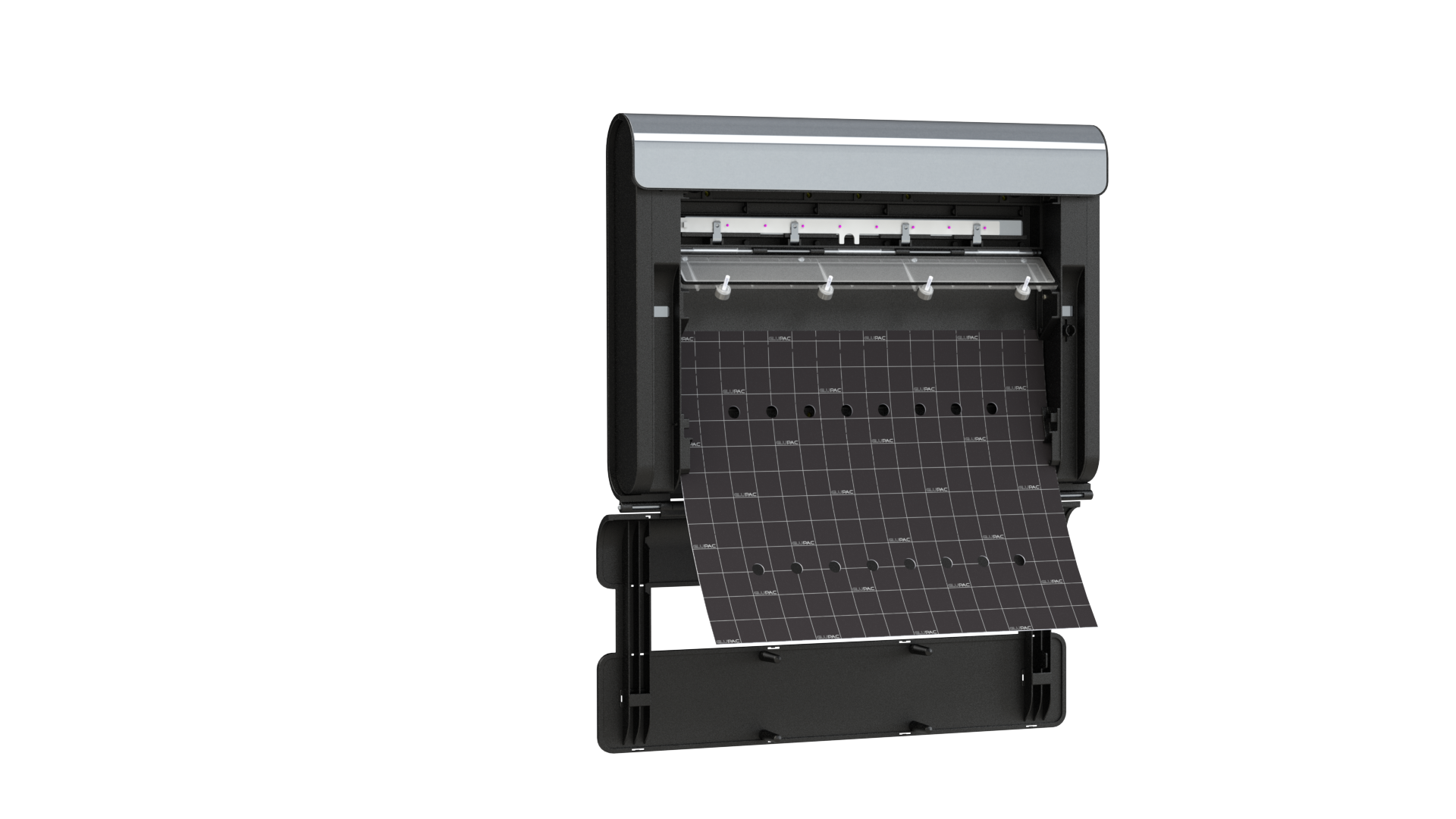 De unieke positie van de UV-ledstrips achter het kleefbord * helpt de opnamesnelheid te verhogen. De onderscheidende LED-strips * hebben ook een effectieve UV-outputlevensduur van 3 jaar. Infiniti® is speciaal ontworpen met gebogen lijmbord geleiders in de eenheid om het lijmbord strak te zetten , te voorkomen dat het gaat buigen en de effectiviteit van het lijmbord te maximaliseren.