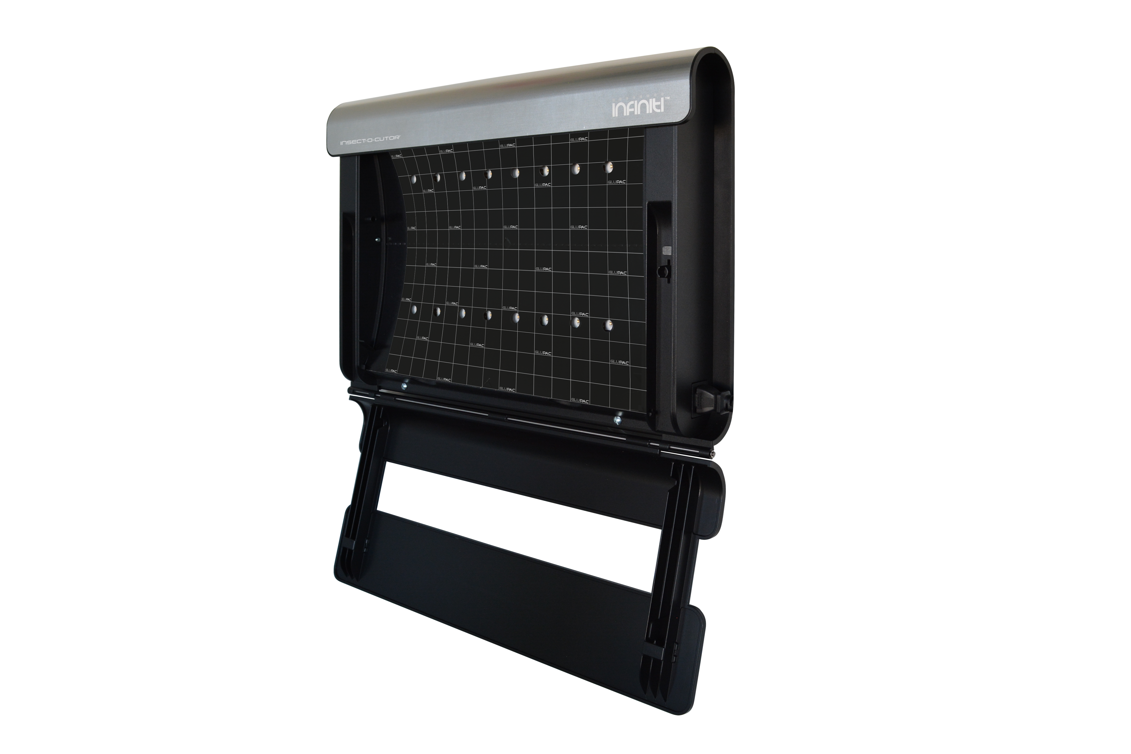 Infiniti® onderscheidt zich van andere glueboard-flykillers door gebruik te maken van een uniek gepatenteerd glueboard en een gepatenteerde UV-bron voor uitstekende efficiëntie.